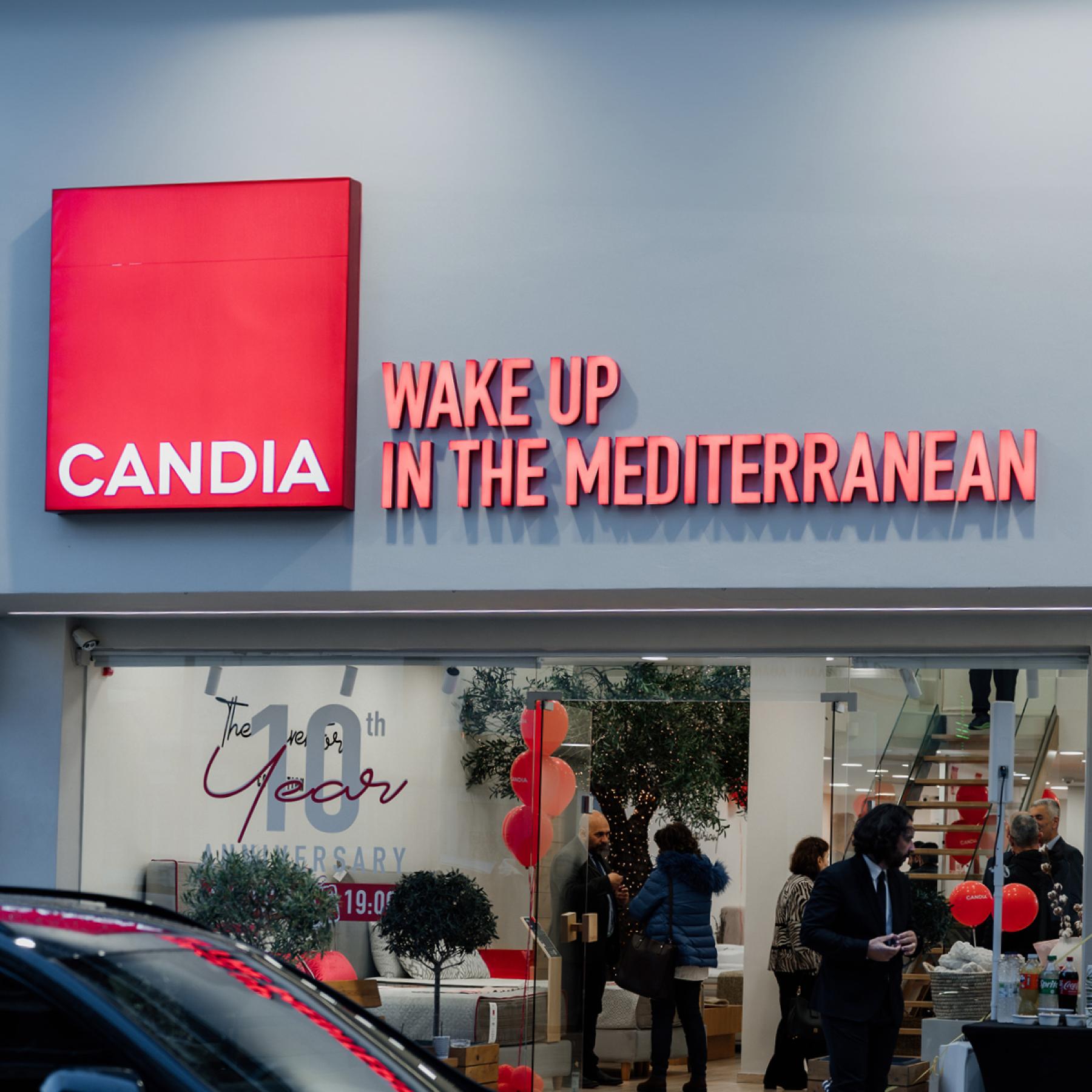 Με αφορμή τη συμπλήρωση των 10 χρόνων λειτουργίας, το κατάστημα ανανεώθηκε, ακολουθώντας τα σύγχρονα πρότυπα των βραβευμένων concept stores της CANDIA. Ο σχεδιασμός και η αρχιτεκτονική του χώρου εναρμονίζονται πλήρως με τη φιλοσοφία «Wake up in the Mediterranean», δημιουργώντας ένα περιβάλλον που προσφέρει μια ολοκληρωμένη εμπειρία φιλοξενίας και ευεξίας.