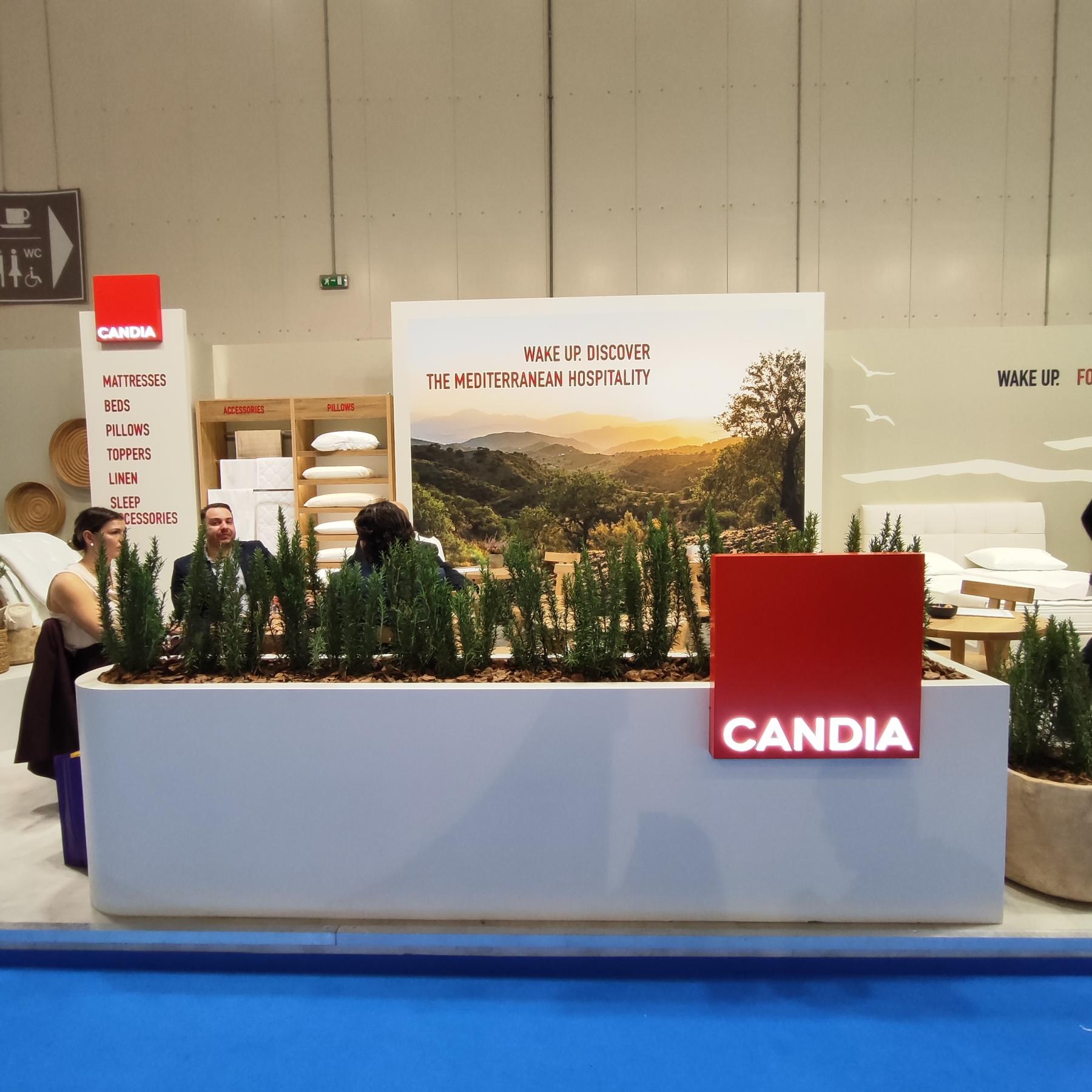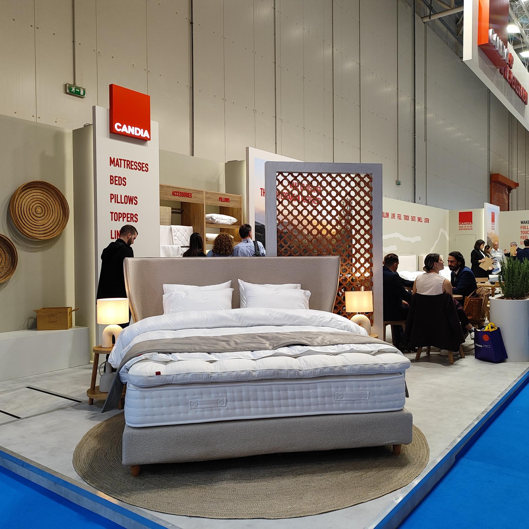 Στο περίπτερο της CANDIA η εξειδικευμένη ομάδα Hospitality παρουσίασε στους επισκέπτες της έκθεσης επιλεγμένα στρώματα από την ξενοδοχειακή συλλογή, statement κεφαλάρια από τις συλλογές κρεβατιών και άλλα προϊόντα ύπνου, με στόχο να παρέχει τις πιο εξατομικευμένες λύσεις στον ποιοτικό ύπνο. Tα κορυφαία ξενοδοχειακά στρώματα της CANDIA εξοπλίζουν ήδη πάνω από 800 ξενοδοχεία σε 20 χώρες. Δείτε πως μπορείτε να κάνετε το ξενοδοχείο σας να ξεχωρίσει με στρώματα CANDIA στο hotel.candia.gr.