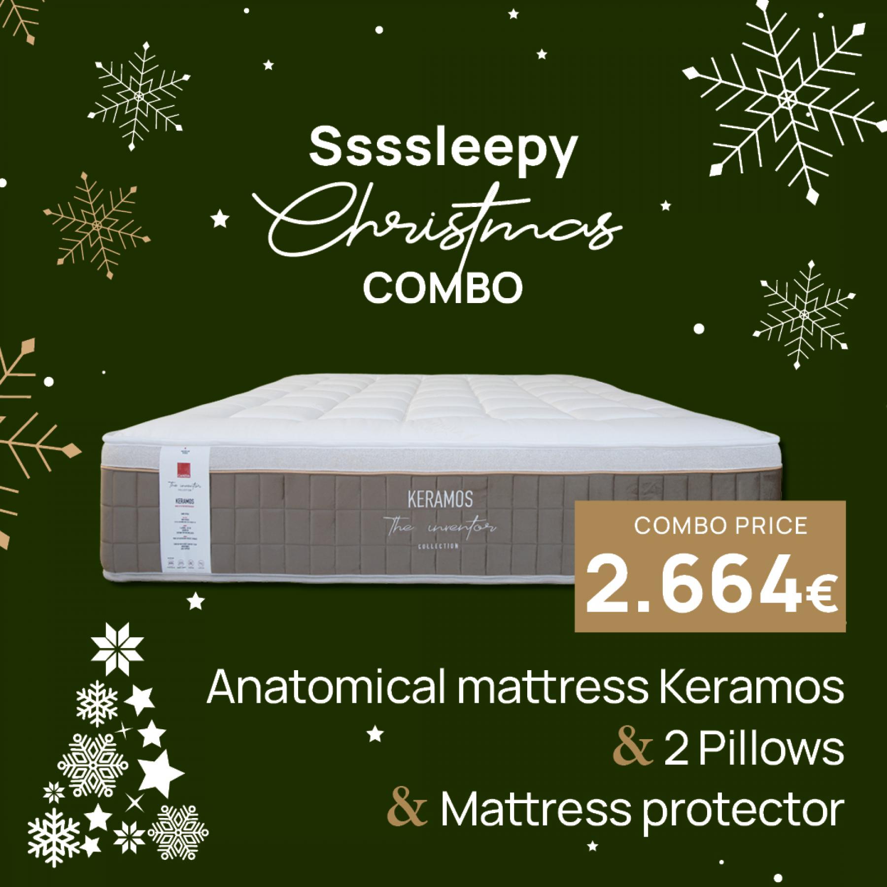 Combine the KERAMOS anatomical mattress (160x200cm) with two TECHNOGEL 11 pillows and the COOLMAX mattress protector, and get them together at a bundle price of €2,664. Learn more.
